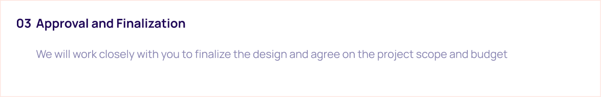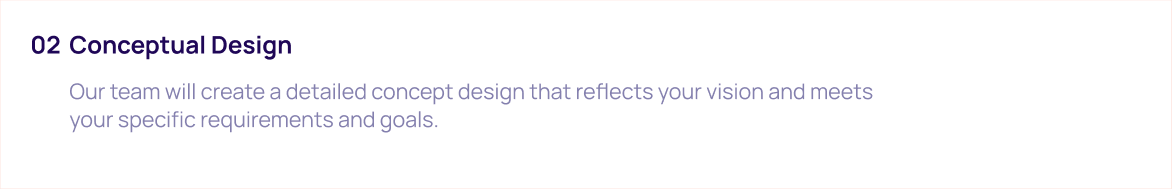 Our team will create a detailed concept design that reflects your vision and meets your specific requirements and goals.