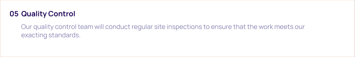 Our quality control team will conduct regular site inspections to ensure that the work meets our exacting standards.